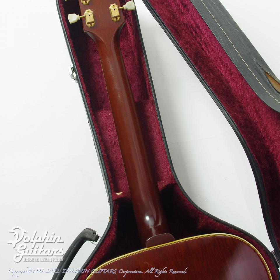ネックにストラップピン穴の埋め木・タッチアップ補修痕、バインディングの割れ補修なども見られ、年代相応といったコンディションであります。サウンドや演奏性は抜群な個体ですので、一度お試しいただけるとこの個体の魅力を感じていただけるでしょう。ケースはオリジナルではありませんがハードケースが付属します。
