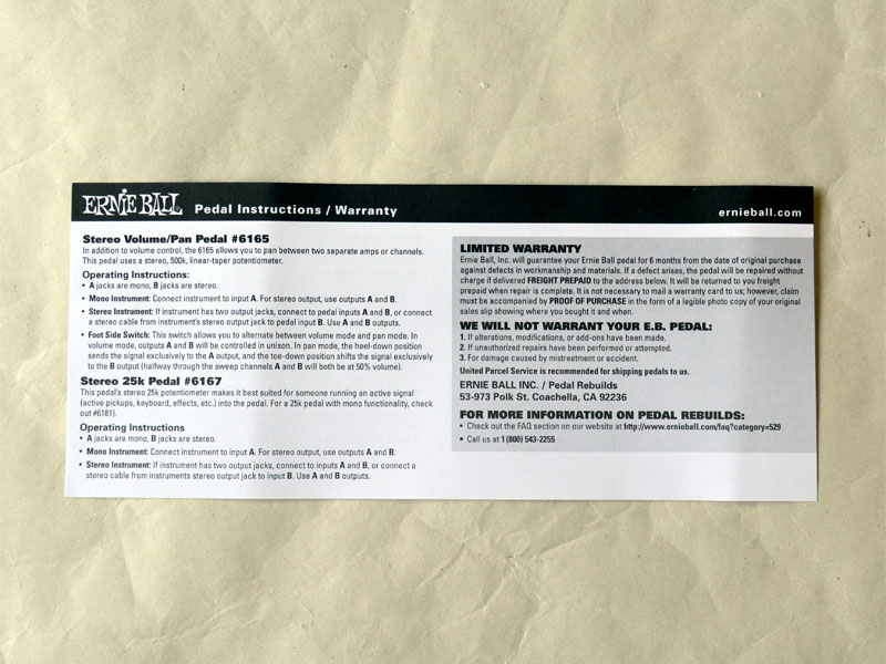 | 商品名 | ERNIE BALL 6166 Volume Pedal |