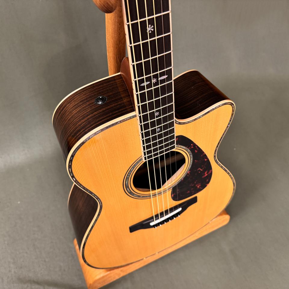 ブックマークする 値下げ通知に登録厳選された材と熟練の技が集約された完成度の高いフォークカッタウェイタイプのギターです。優れたレスポンスと、幅広い音域で豊かに伸びる音色が特長のイングルマンスプルース単板をボディトップに採用しました。サイド&バックにはインドローズ単板を採用。ノンスキャロップ・Xブレイシング、スクエア・フレーム構造、新開発Cブロックが、ギター全体を力強く響かせ、太くハリのあるサウンドを生み出します。