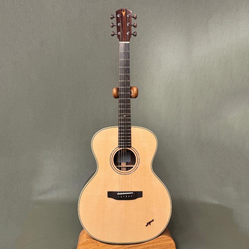 スプルース × インディアンローズの全面単板構成により、深みのある低音と明瞭な高音を両立。