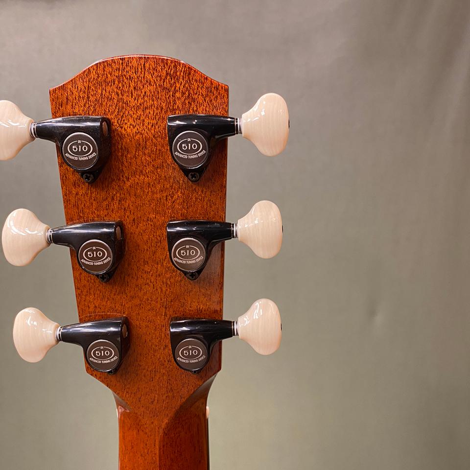 クラシックギターサイズのアコギとしてフィンガーピッカーに人気の高いRF-65! ピックガードは透明素材が塗装したに張られた、木目を見せる製法。どれも熟練の職人技が必要な工程です。通常マットな艶なし仕上げの塗装となりますが、こちらは下倉楽器特注のセミグロスフィニッシュ。トップ材の振動をより生かすためにXブレースに穴を穿ったエアリーブレースを採用しています。