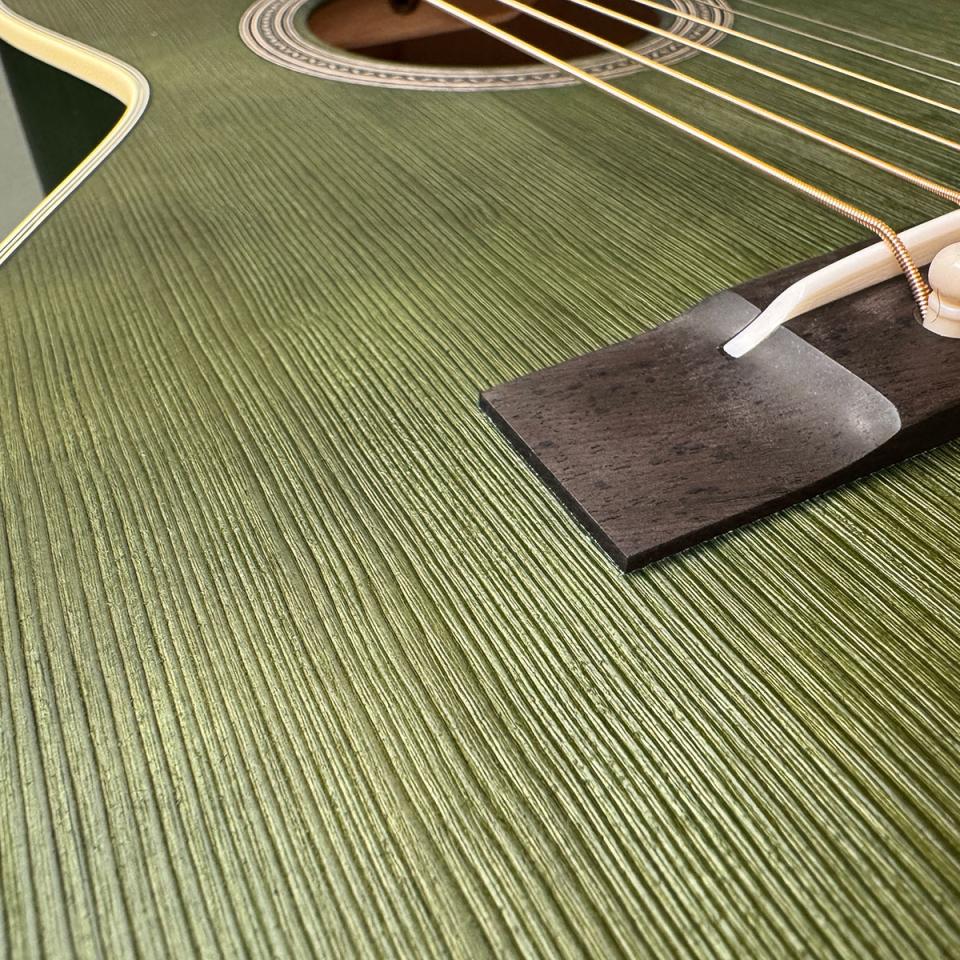 表板のスプルースは日本の古い家具に用いられた浮造り加工を施しています。
