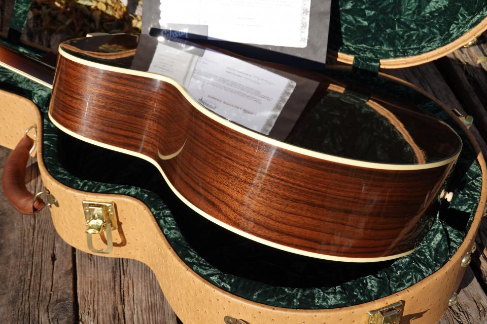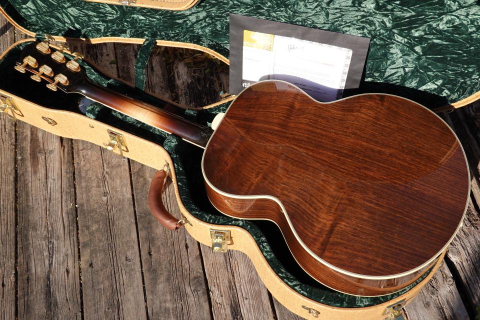 このモデルは戦前のSJ-200を完全再現したもので、トップは上質なアディロンダックスプルース、そしてサイド&バックには美しい木目のフィガードローズウッドを採用し、その他ピックガードやヘッドロゴ、チューナーなど細部にわたってオリジナルSJ-200を復刻した極めてレアで上質な逸品です。