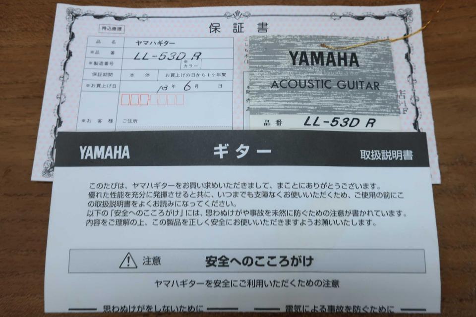在庫一覧 YAMAHA LL-53D.R Custom / Head Inlay・Abalone Trim and Rosette・Maple Binding・Ebony Fingerboard and Bridge・Premium Grade Ezo Spruce Top・Premium Grade Indian Rosewood Side and Back 【With Original Hard Case】 2001年製
