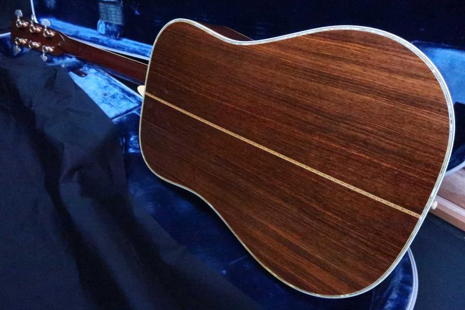 サウンドはノンスキャロップドXブレイシング、ローズウッド・ブリッジプレートのスペックで、70年代のフォークシーンを代表する低音は低音らしく重厚で奥行きや深みが有り、中域の粒立ちの良い音抜けに、鈴鳴りと喩えられる倍音豊かな高音域は垂涎のサウンドです。また国内外のトップアーティストやギタリストの使用もあり、70年代のフォークシーンで育った叔父さん達(私も含め)の憧れの的でも有りました。私も学生時代に楽器店でMartin カタログを買うだけでも勇気がいった時代です。試奏なんてとてもとてもお願いできるはずもなく、その反動で今日が有るのかもしれません。
