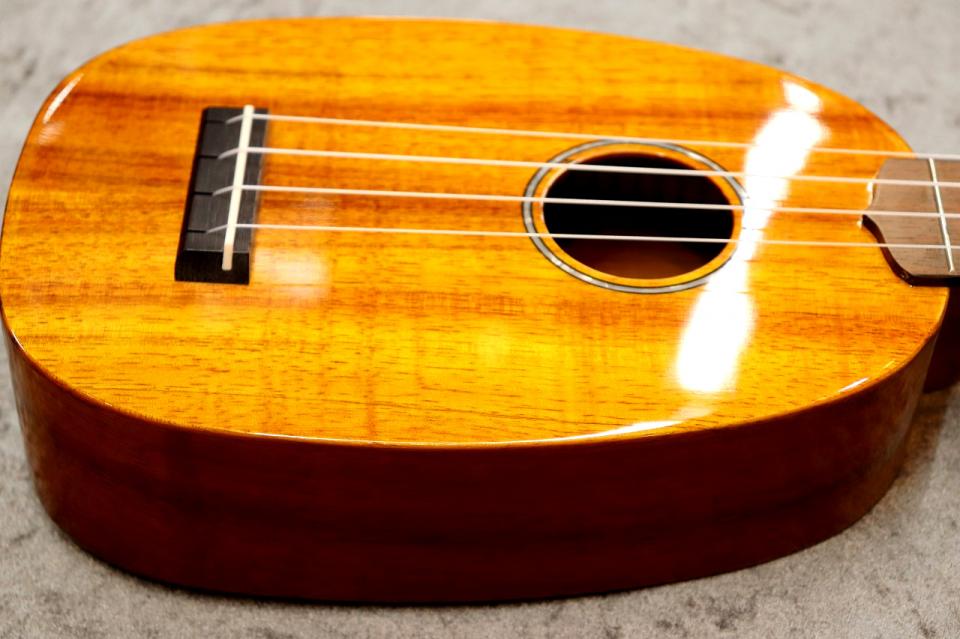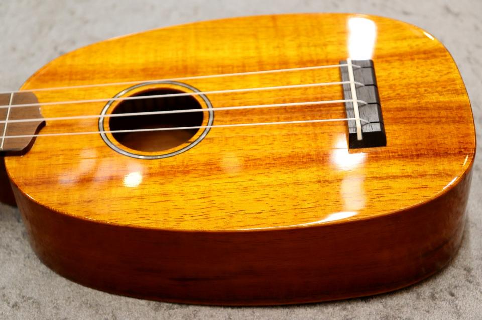 パイナップル型..可愛らしくもウクレレの伝統的な形です。基本ソプラノに分類され、より中域がふくよかといわれています。
