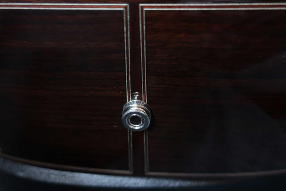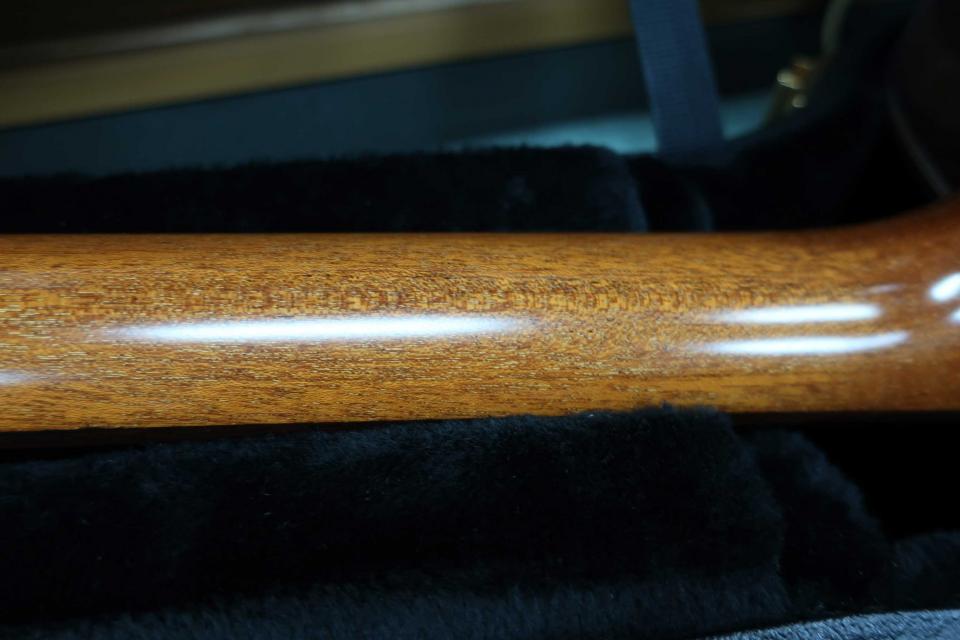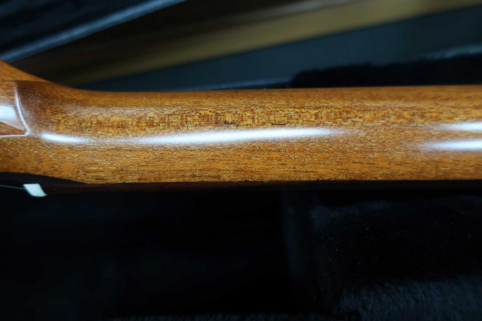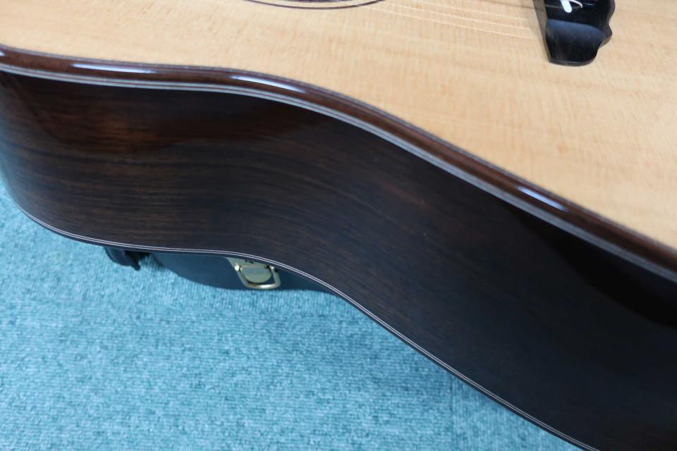 状態は使用感も少なくトップにも光に翳してようやく分かるぐらいの擦り傷ぐらいでサイド&バックやネック裏も綺麗でピックガードのスクラッチ傷も殆ど見受けられず極上のコンディションを保っております。。ネックヒール裏のストラップピン装着済みでピックアップは付いておりませんが、エンドピン・ジャック仕様になっております。ご希望がありましたら、リプレイス用12mmエボニーエンドピンもお付けします。またピックアップ取付をお考えの方は簡単に取付けも可能です。弦高はかなり低く弾きやすいせってがされており、12F6弦で約2.2mm、1弦約1.7mmでピエゾを取り付けても2.5mm程度に設定されております。サドルの余裕も約2.5mmありネックを含めプレイヤビリティも良好です。オリジナルハードケースも付属しています。発売から即売れして買い逃した方は、是非この機会にご検討下さいませ。また当店ではTerry’s Terryのオーダー等も受け承っております。お気軽にお問い合わせ下さいませ。