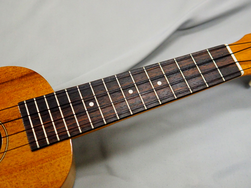 当店のウクレレは全て完全調整済みで、「1フレットに力を入れず、軽く指を乗せただけで綺麗な音が出ます。