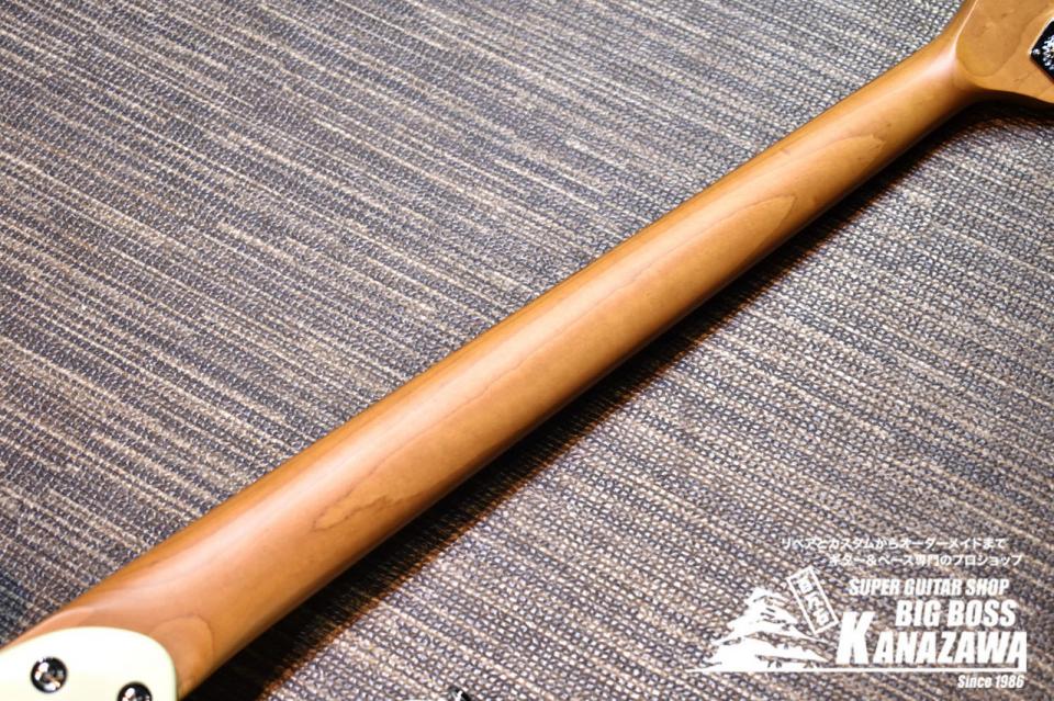 ローステッドメイプルネック&ローステッド・バーズアイ・メイプル指板にステンレスフレット。
