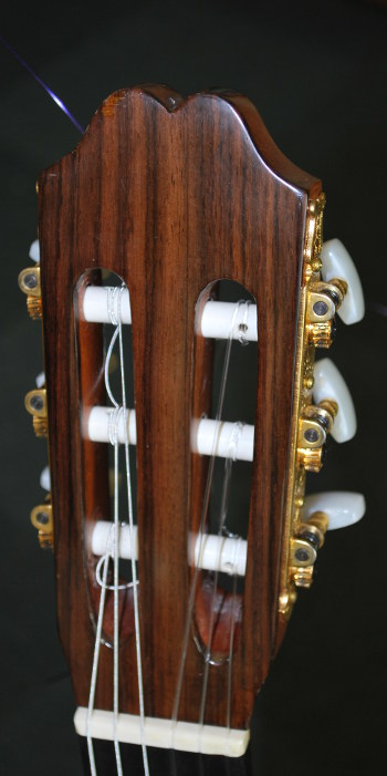 最後に本器の仕様だが、トップは少しベアクロウの入ったスプルース、サイド&バックはローズウッド、指板は黒檀素材