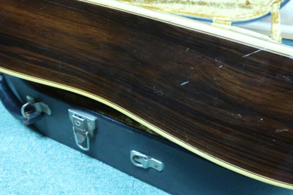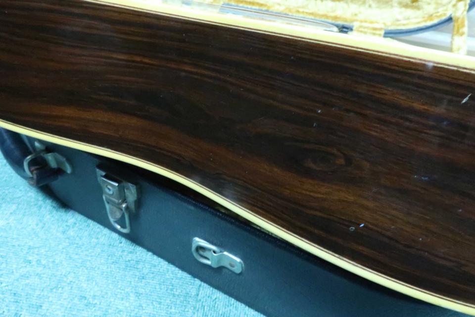 希少な70年代当時の稀少なフラッグシップ・モデル!トップには淡黄色の稀少材ジャーマン・スプルース単板、サイド&バックには板木目のハカランダ単板に本べっ甲ピックハードの最高峰モデル。。