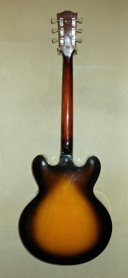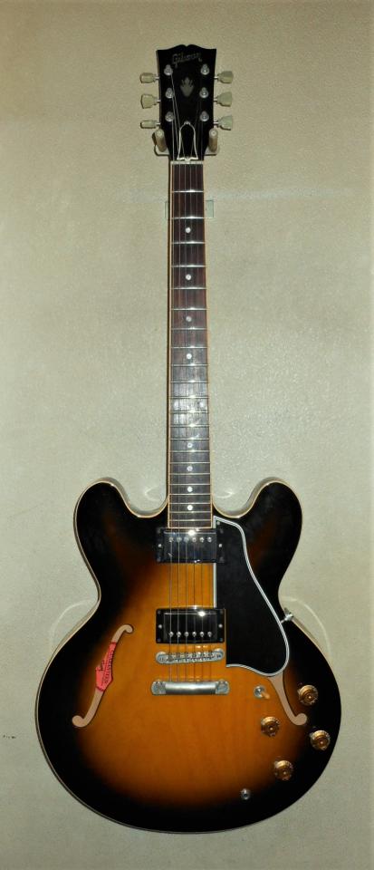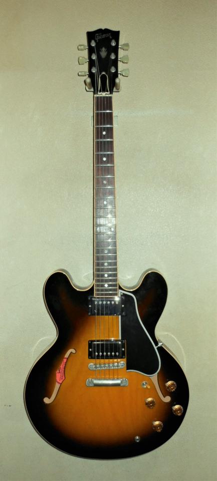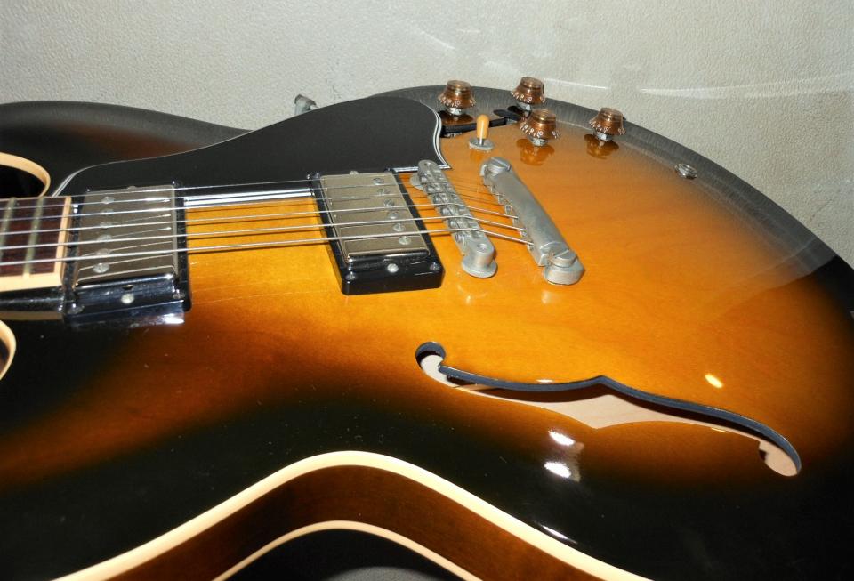 3.8K,もともとは59のリイシューなので、ファットなネックだったと思います。ネックを通常の太さに、ナットを牛骨に、塗装を軽く,リタッチいたしまして、ネックは、現在の姿になっています。絶妙なティーバーストの3TSは、レギュラー品ではあじわえない、美しい物となっています。全体にスレ、ダコン、その他ダメージはありますが、まだまだ充分に綺麗な335です。