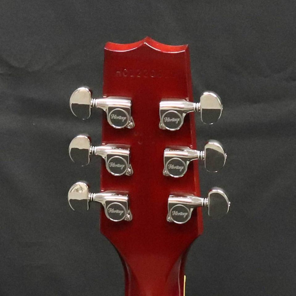 ヘッドストックにはヒイラギのベニヤがあり、ツインアローのインレイが付いた「Heritage」ロゴが付いています。