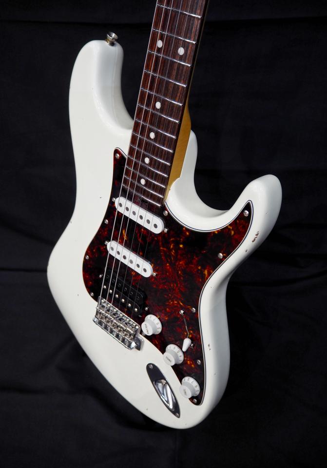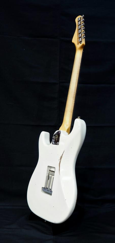 一回り小さいボディサイズに25.25インチという絶妙なスケールを採用。間違いなく日本人にフィットする抜群の弾き易さを実現しています。またヘッド裏にヘッドからネック全体に渡って鳴りを向上させる "HVC (Head Viblation Controller)" という独自の仕様を採用。生鳴りでもその有意性を感じさせる仕上がりになっています。また自社開発のオリジナルP.Uも抜群の反応性とトーン・ニュアンスを放出。ヘッドのクラックや塗装の剥がれ具合等、圧巻のリアリティを実現したMiddle Aged。作りの良さとサウンドを高次元で両立させた、1歩前を行くブランドです。アルダー・ボディにオリンピックホワイトが美しい仕上がりの1本!!