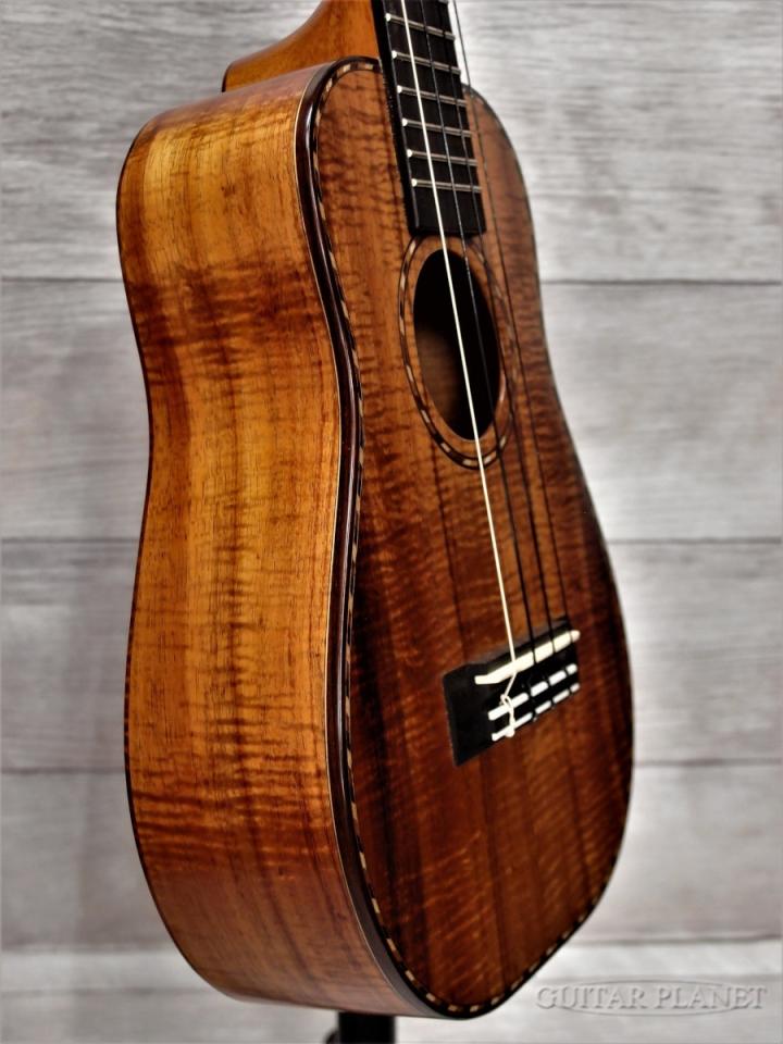 美しい杢目のハワイアンコア、ロープバインディング装飾がハイグレードモデルである象徴になっており、スタンダードモデルと異なる特徴は、Low-Gチューニングの際のバランスを考慮した設計にあります。
