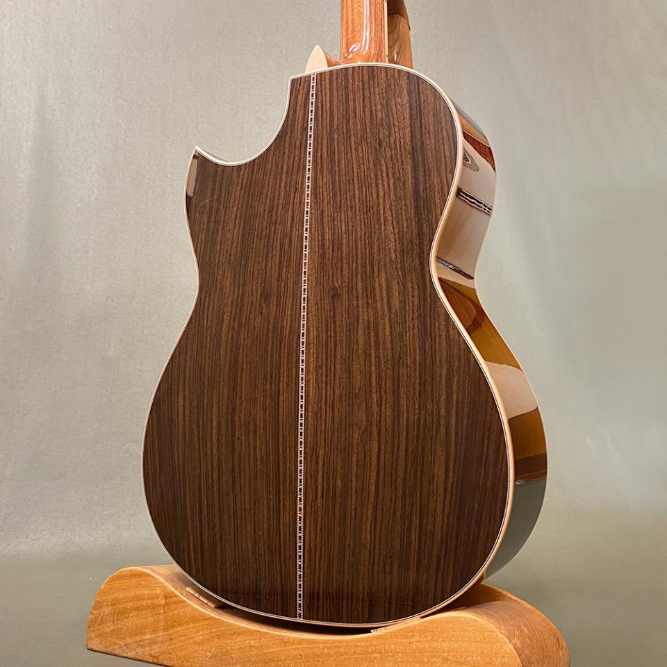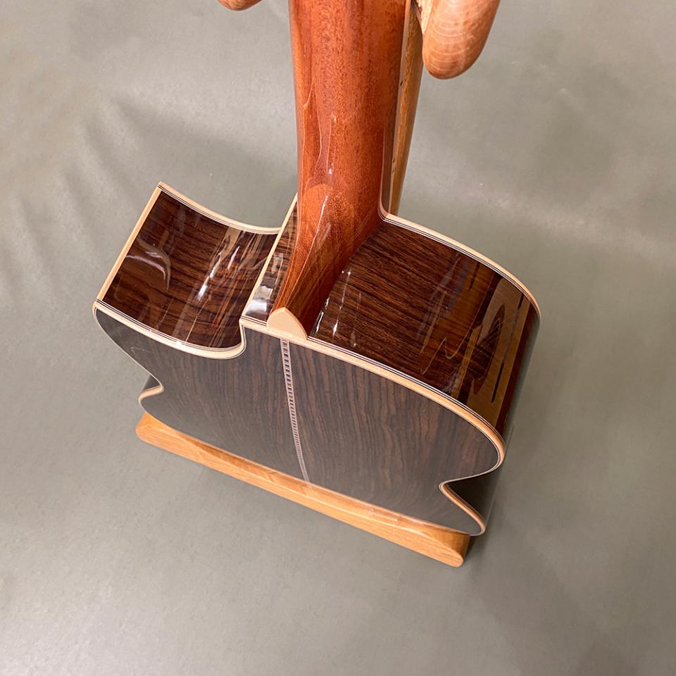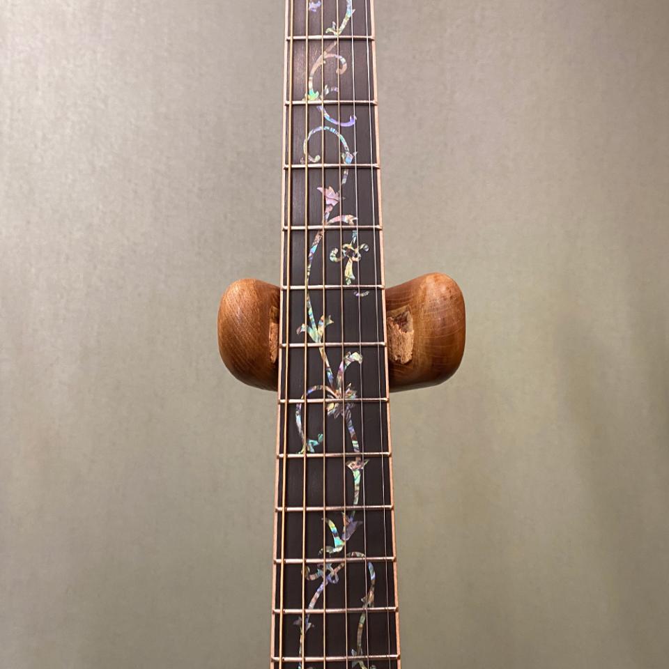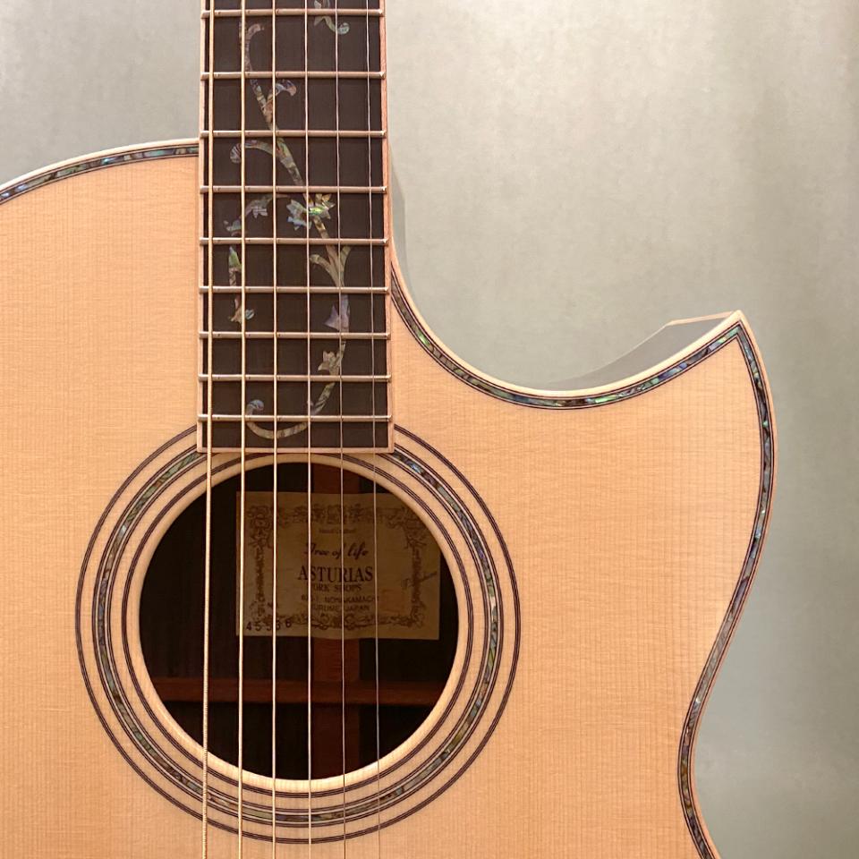 豪華なインレイワークと値段に不釣合いな高級材、ハイポジでのパフォーマンスを向上させるカッタウェイにはこだわりのフローレンタインスタイル、クラシックギターのようなボディーサイズから生み出される美しく繊細なサウンド、日本製ハンドメイドの真髄です。<br>