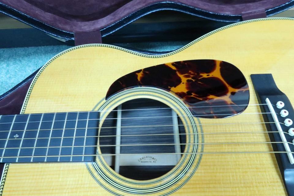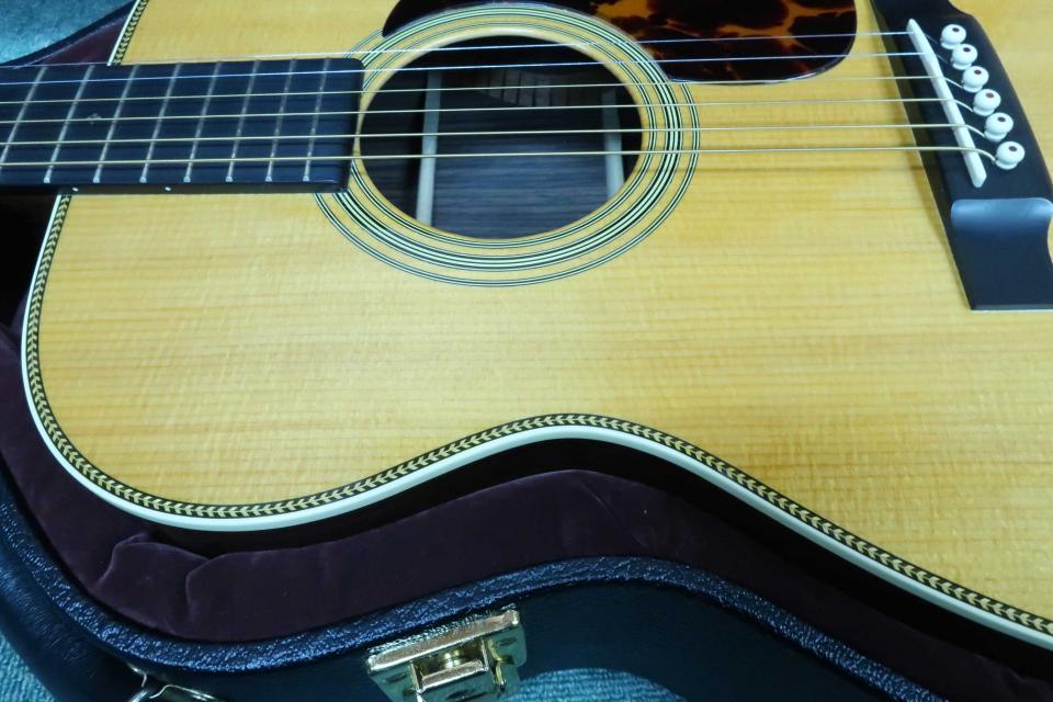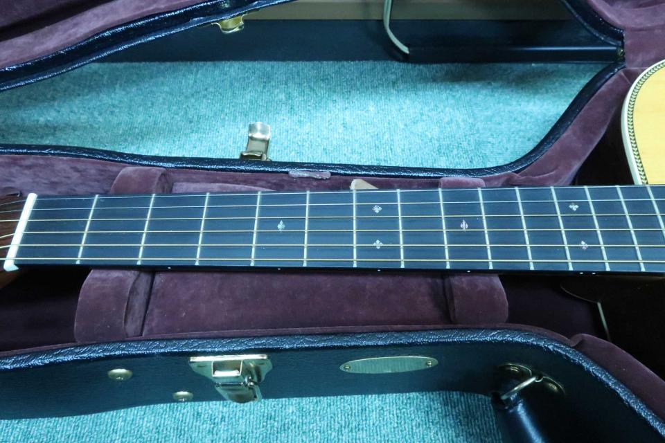 状態は使用感も少なくペグの金属劣化も見られず輝いておりフレットの減りも殆どなく9分目は残っており指板の消耗も見受けられません。トップも目立つダメージもなく僅かに塗装のウェザーチェッキングは見られますが、サイド&バック、ネック裏も素晴らしく綺麗で、木部のクラックなどの修復歴も見受けられず極上のコンディションを保っております。ナット幅約44.4mm、弦長約632.5mm、弦高も12F6弦約2.5mm、1弦約1.8mm、サドルの余裕も約3~4mmあり、元起やブリッジ下の膨らみも問題なくネックを含めプレイヤビリティも良好です。ハードケースはワンランク上のMartiハードケース、保証書、取説も付属しております。中古市場でも玉数の少ない稀少モデルを是非この機械にご検討を頂ければ幸いです。(メーカー希望税込価格¥495,000-)