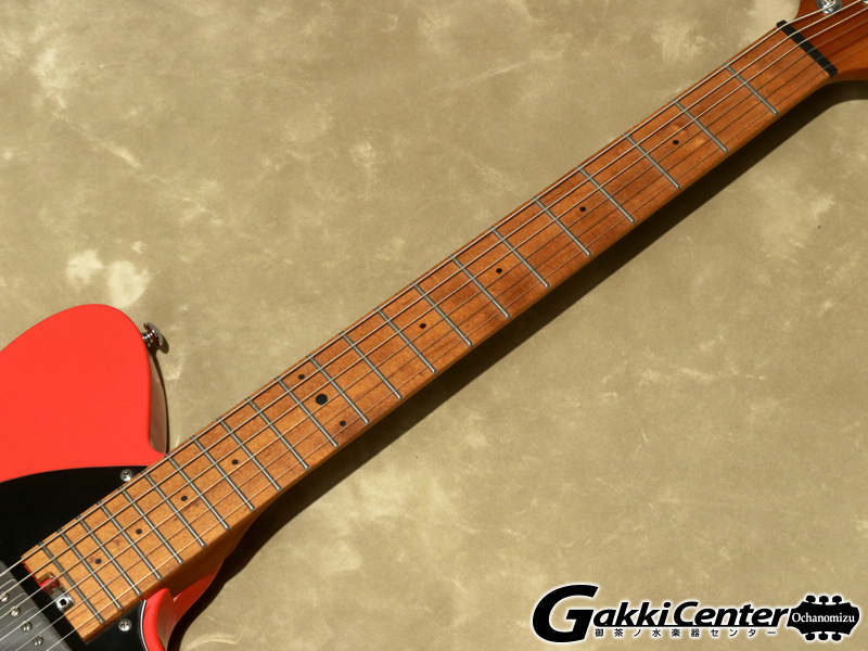 フィンガーボードもローステッド・メイプルで、ブラック・ドット・ポジション・マークを配置しています。