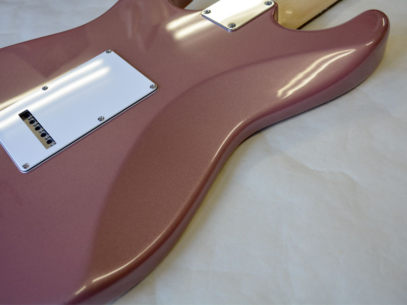 カラーは60年代のレアカラーのイメージの“バーガンディーメタリック”を採用しラッカー仕上げでルックスはシンプルにビンテージな感じをイメージしています。