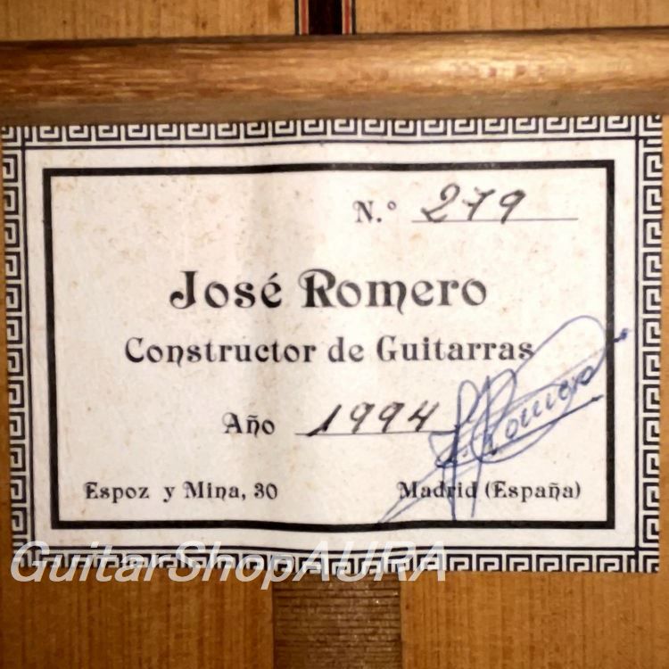 Jose Romero Garrido 1954年スペイン、アンダルシア地方のバエサ生まれ。幼少の時に家族でマドリッドに移り、1968年14歳の時にラミレス工房に入り見習いとして製作家としてのキャリアをスタートします。地道に修行を重ね、途中兵役のため一旦工房を離れますが除隊後に再度ラミレス工房に入り、マスタークラフツマン試験を志願、ラミレス3世の高い評価を得て21歳で正規職人任命されます。その後8年間ラミレス工房にて働いた後、1983年に自身の工房をマドリッドに開設して独立。