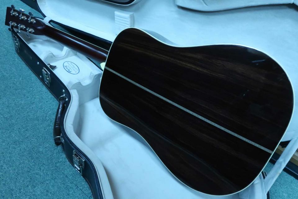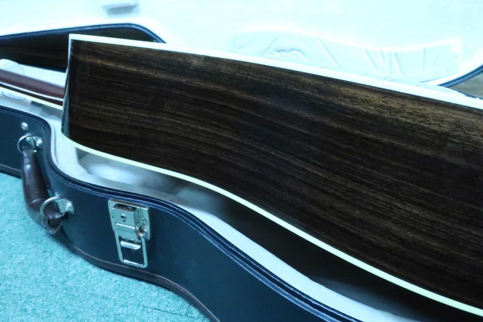 ナット幅実測約43mmでややスリムなVシェイプで握り易く、弦高も12F6弦約2.5mm、1弦約2mm、サドルの余裕も約3mm有り調整も可能です。アジャスタブル・ネックで反りや元起も無くプレヤビリティも良好です。オリジナルハードケース、保証書、取説も付属しています。中古市場でも滅多に出ない稀少モデルを是非この機会にご検討を頂ければ幸いです。