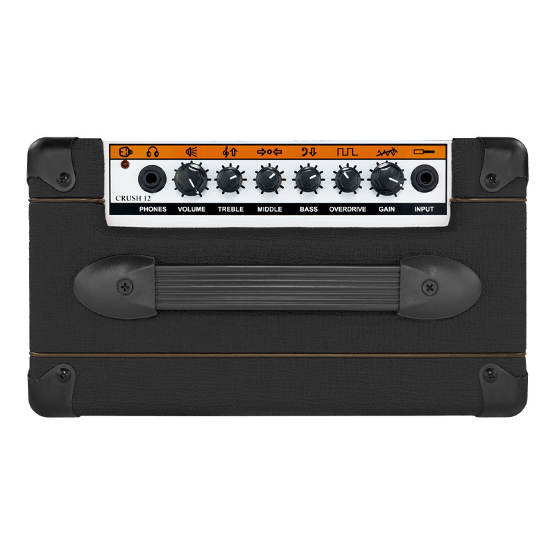 Top Panel (Right to Left): Instrument Input, Gain, Overdrive, Bass, Middle, Treble, Volume, Phones Output