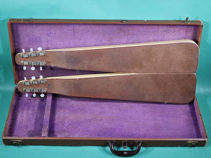 1950年代~60年代にかけて製作されていた6弦のダブルネックスチールギターで、ウッドボディーにパーロイドをコーティングしたオールド・アメリカンな渋いルックスが目を惹きます。