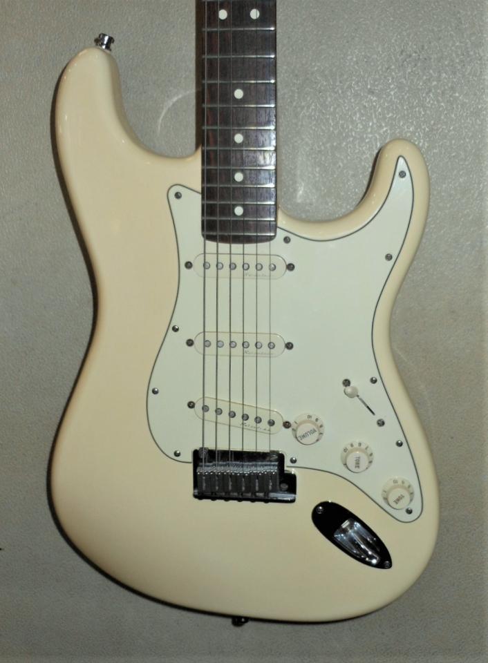 ネックの太さも、丁度よい、やや太めのグリップ程度!ローラーナット、ノイズレスPUと、完成型のベックモデルです。おおきなダメージもなく、フッレットも90%以上で、安心して、ご購入出来るSTです。オリジナルHケース(ツイード)バックパネルも勿論付属されています。
