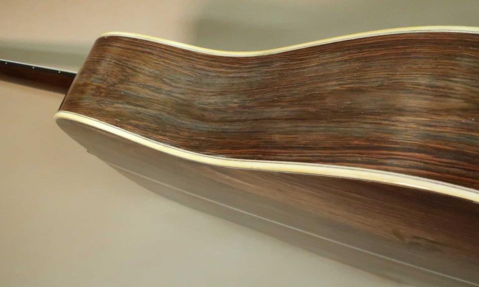 サウンドはノンスキャロップドXブレイシングが採用され、ジャーマントップとハカランダの箱鳴りするパワフルな音量に重厚な音圧、締りの有る野太い伸びのある低域に輪郭の際立った音抜けと歯切れの良い中域と、『シャリーン』と響く高音域は正にジャーマン&ハカランダ材の煌びやかな鳴りです。軽く爪弾いても心地良く響き奥行きがあります。またBlue BellやIbanezブランドなどOEMで多満製作所で製作されたTAMA製は熱狂的なファンも多く人気の衰えないコレクタブルなブランドです。