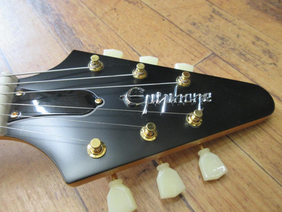 EpiphoneはGibson Custom Shopとのコラボレーションにより、1958Korina Flying Vの復刻モデルを限定リリース。1958年当時のレアなオリジナルモデルの特徴的な仕様(コリーナボディとコリーナネックの強固な接合を実現するロングネックテノン、1958ネックプロファイル等)を網羅。ピックアップにはGibsonBurstbucker2,Burstbucker3を搭載し、2ヴォリューム、1トーンでコントロール。CTSポット、マロリーコンデンサー、Switchcraft製の3wayセレクターを装備。ヘッドストック表には立体的に浮き上がる”Epiphone"ロゴ、裏側には”Epiphone""Gibson Custom"のロゴ。