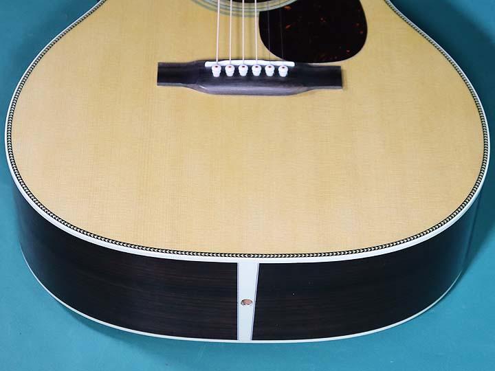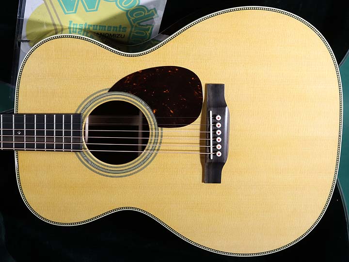 14フレットジョイントの0M-28はバンジョースタイルペグで1929年に登場以来、継続生産されているロングセラーモデルです。