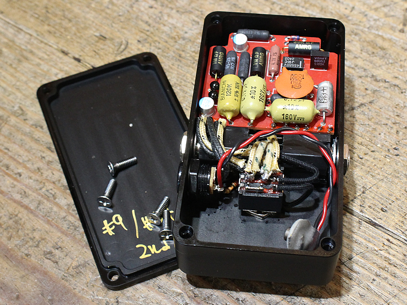 フタを開けるとヴィンテージパーツと現行パーツを織り交ぜたオリジナリティあふれる組み上げが見ていておもしろく、フロントのデザインも含め、目でも楽しめるペダル。状態は美しく、ほとんど使用されていないといっても過言ではない良コンディションです。