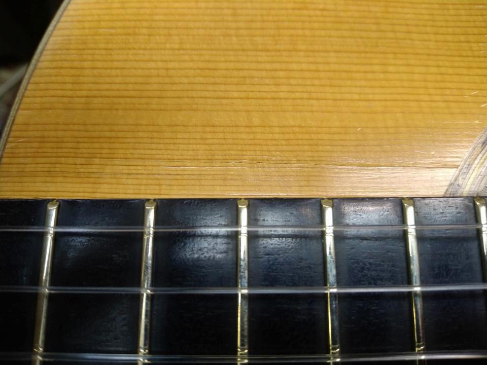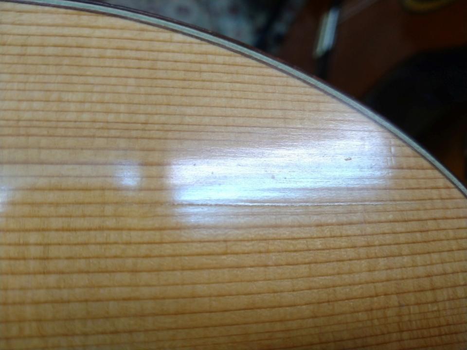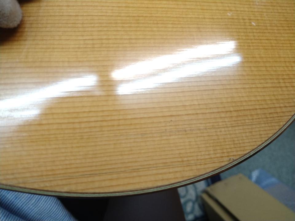 修理箇所:表面板の指板脇に3か所のひび割れがあり、裏パッチを含め修理済です。また、表面板の肘が当たる部分に2か所のひび割れがあり、裏パッチを含め修理済です。表面板の一番右の部分に1ヶ所のひび割れがあり、裏パッチを含め修理済です。