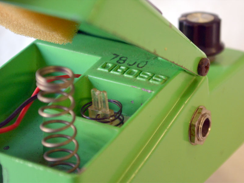 皆さんご存じかとは思いますが、最初期の物の特徴で赤いLEDは、フットスイッチを踏んでいる間だけ点灯する仕様ですので、