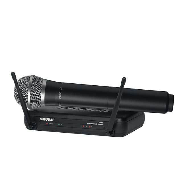 こちらはSVX4ダイバーシティ受信機とSVX2/PG58ハンドヘルド型送信機のセットで、スピーチやボーカル用途に最適です。