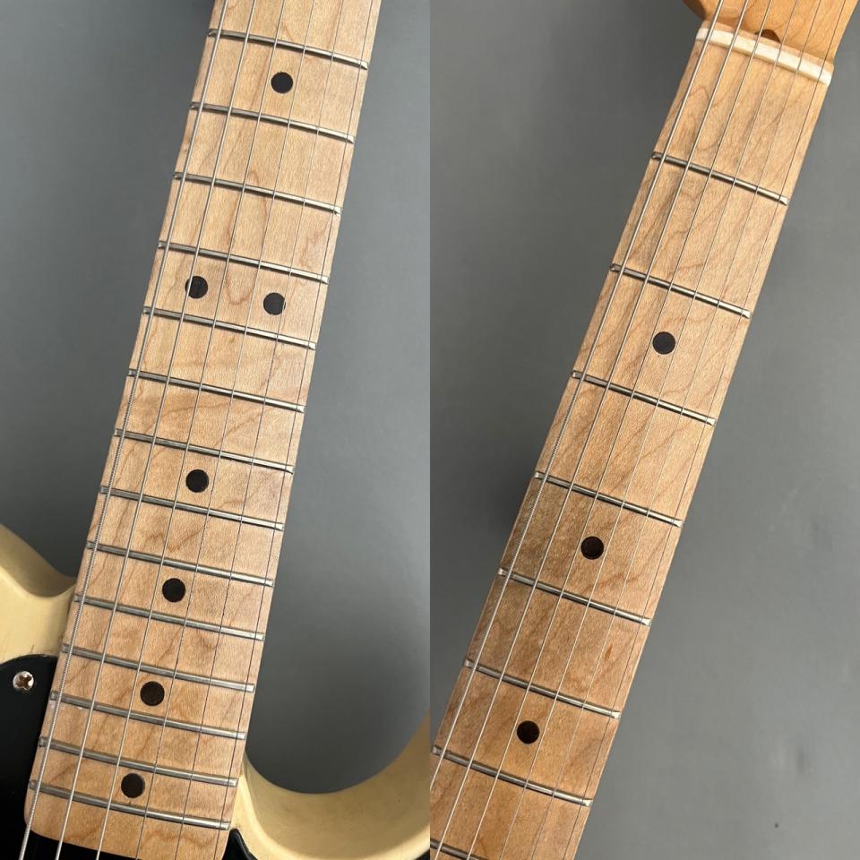 使用する木材もおよそ20年前の木材であったり、カラーもいくつものサンプルを用い再現するなど、細部にわたって再現されており、極めつけは、さらには重量やネックの「しゃくり」、ポジションマークと再現を忠実に行われております。