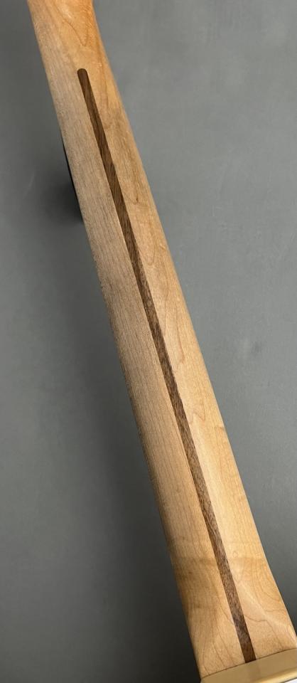 ネックシェイプは”U"シェイプというよりは”V"に近く、あまり太さを感じないグリップ感じとなっております。