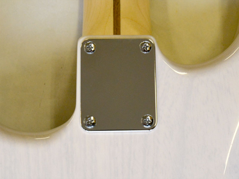 ツバ出しネックの場合、コントロール関係に不具合があったり仕様を変更する場合、必ずネックを外し手からピックガードを開ける作業が必要でしたが、今回の仕様変更で簡単にピックガードを開けて作業することができるようになります。