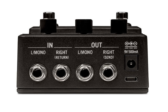 『HX One』は、接続する機器やピックアップに応じてインプット・インピーダンスを調整することができます。また、MIDI経由で外部機器とのコマンドを送受信できたり、エクスプレッション・ペダル(別売)または2つのフットスイッチ(別売)を接続してエフェクト・パラメータをコントロールするシステムを組むことも可能です。同梱する9V電源だけでなく、一般的なエフェクト・ペダル用電源も使用できるので、どのようなペダルボードにも簡単に組み込めます。