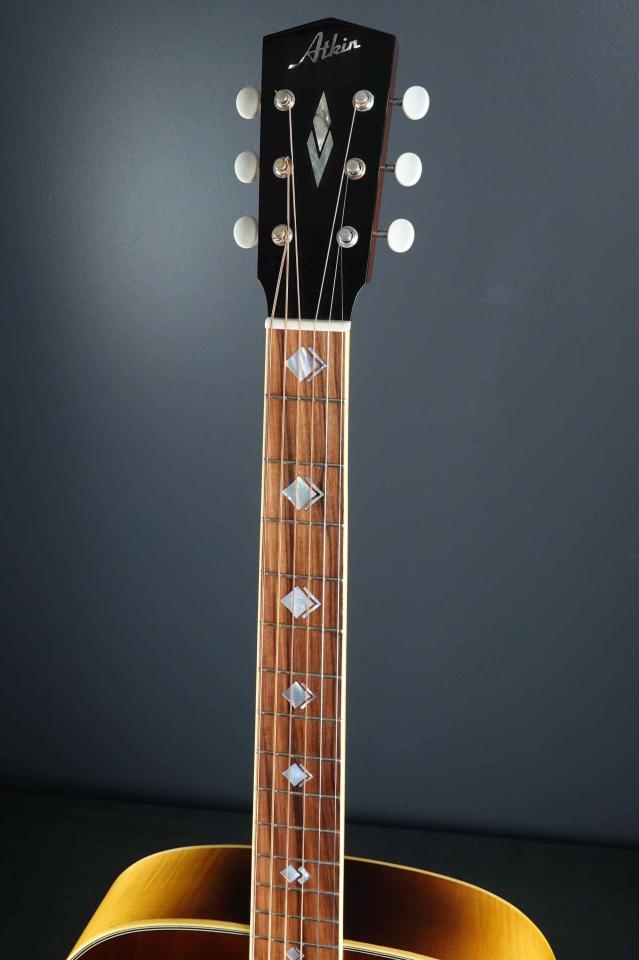 このギターは2020年製のジャンボモデルのUSED品。アトキンギターとしては最大サイズのモデルです。
