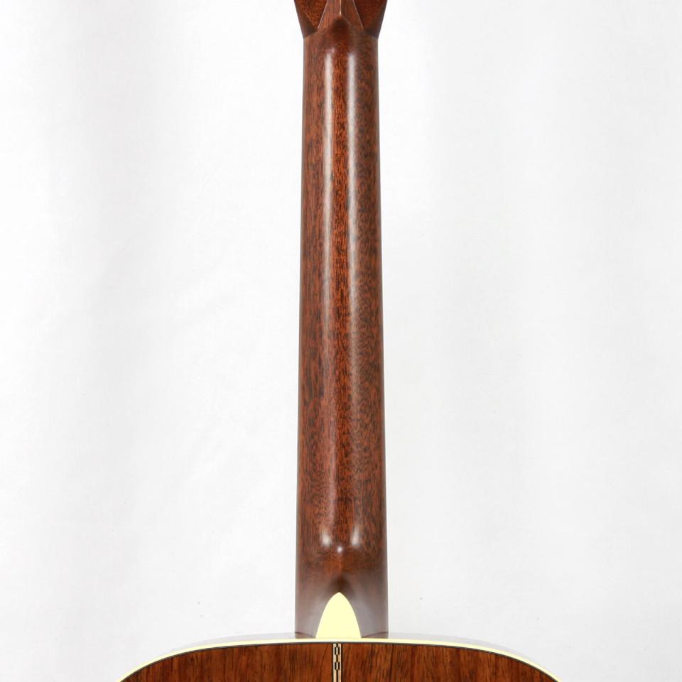 その他スペックとして、エボニー材指板&駒、アディロンダックスプルース材ブレイシング(スキャロップド)、マホガニー材ネック、ナット幅は44.5mm、ヘッド裏スタンプ、Groverオープンバックペグとなります。