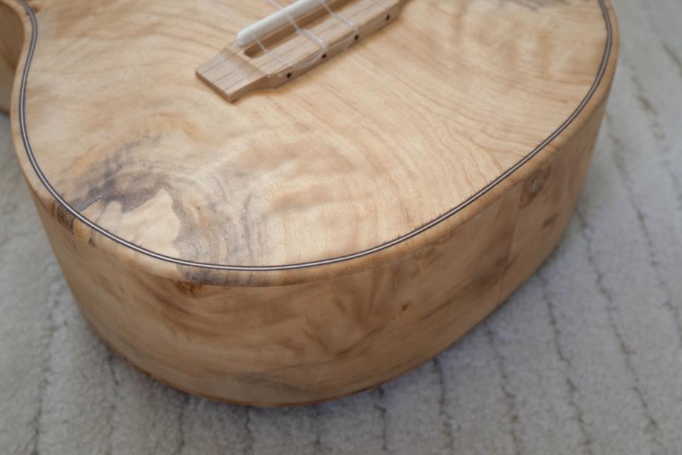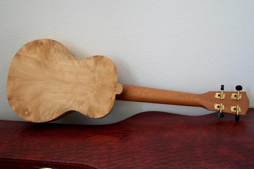 ネックはマホガニー、指板、駒には和材の栗(くり)、ヘッド天神には、ボディ材に合わせてポプラ材を採用した、コンサートウクレレです。