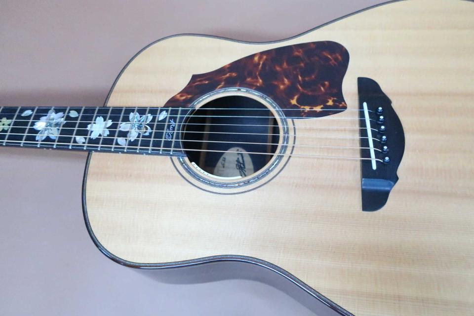 さだまさし氏デビュー45周年を記念して製作された希少モデル!絢爛豪華な”Sakura”インレイがヘッドから指板エンドまで豪華に施され、記念モデルに相応しい芸術性の高い存在感の有る仕上がりです!