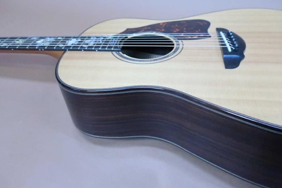 サウンドは”さだまさし氏ご本人使用実機と同仕様でのリリース”で、ご本人のツアーでも使用されており、ファン垂涎のサウンドです。伸びやかでスケール感の有る低域に軽いタッチでも粒立の良い中域の音の立ち上がり素晴らしく。強めのストロークでも1音1音の音が潰れず輪郭の際立った箱鳴りする音抜けとリバーブ感は流石です!またフィンガーピッキングでは弾き手のピッキング・ニュアンスが絶妙に表現され煌びやかで澄んだ透明感の有る高音域も魅力です。また本器は、L.R.Baggs Anthemデュアルピックアップシステム搭載でライブやレコーディングには即戦力でご使用が可能です。