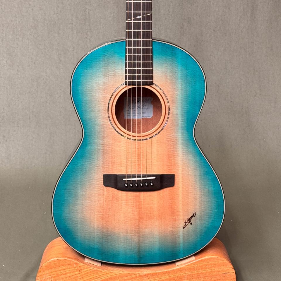 クラシックギターサイズのアコギとしてフィンガーピッカーに人気の高いRF-65! ピックガードは透明素材が塗装したに張られた、木目を見せる製法。どれも熟練の職人技が必要な工程です。通常マットな艶なし仕上げの塗装となりますが、こちらは下倉楽器特注のセミグロスフィニッシュ。トップ材の振動をより生かすためにXブレースに穴を穿ったエアリーブレースを採用しています。
