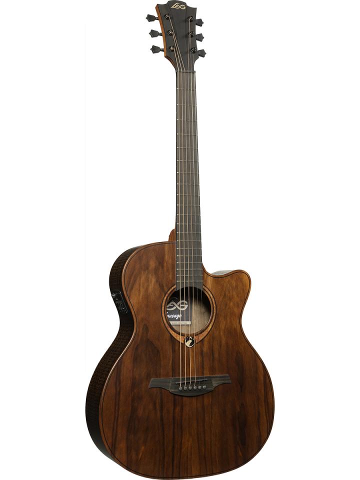 ボディ・トップにFSC認定を受けたフィギュアドのペール・ブランコウッド単板、