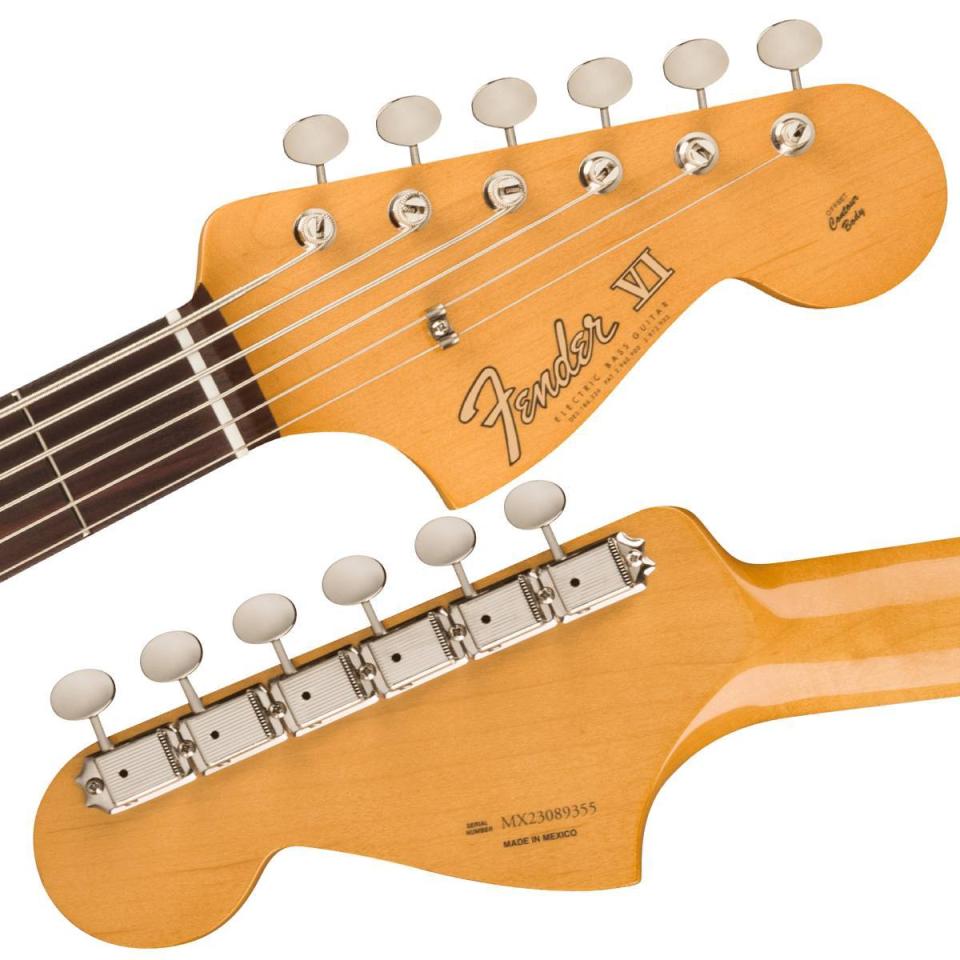 Vintera II 60s Bass VIは、アルダーボディとメイプルネックを採用し、パンチと透明感に溢れたクラシックなフェンダートーンを実現します。Mid-60s Cシェイプネックは、7.25インチラジアス指板とヴィンテージトールフレットにより、大胆なベンディングや繊細なビブラートが可能で、ヴィンテージの快適さが得られます。2基のヴィンテージスタイルEarly-60sシングルコイルピックアップは、煌びやかさと温かでウッディーなトーンを併せ持ち、アイコニックなフェンダーサウンドを提供します。ヴィンテージスタイルのフローティングトレモロによる表情豊かなアーミングが可能で、ヴィンテージスタイルチューニングマシンは、クラシックなルックスに加え、より細かいギア比とチューニングの安定性を向上させます。