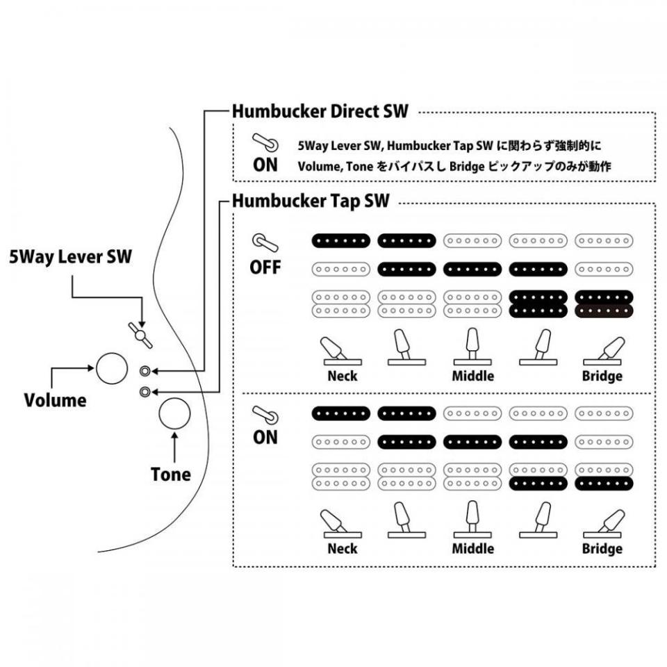 Controls:1Volume, 1Tone, 5Way Lever SW, 2 Mini Tricky SW