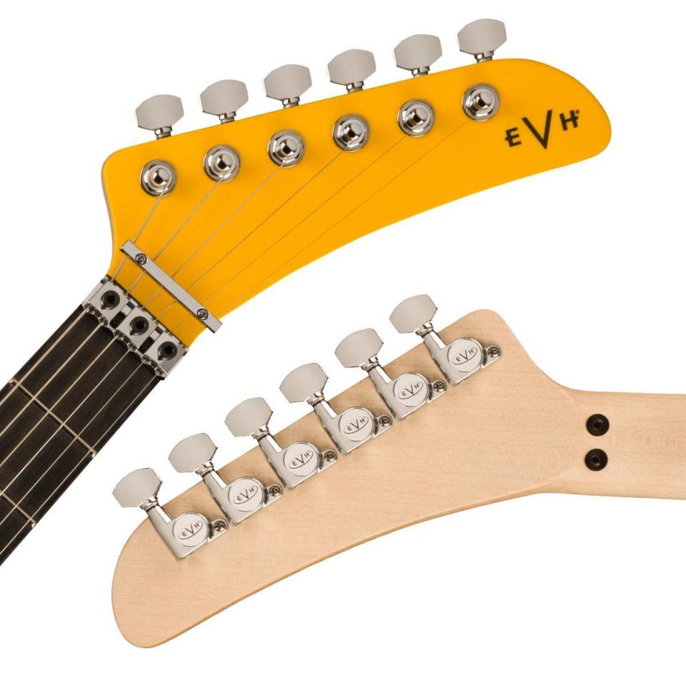 グラファイト補強ロッドで強化されたボルトオン式クォーターソーンメイプルネックは、快適な”C”シェイプ、手作業によってフィニッシュされたサテンウレタンネックバック、ヒールマウントのトラスロッド調整ホイール、EVHロゴのデカールが付いたホッケースティック型ヘッドストックが特徴です。
