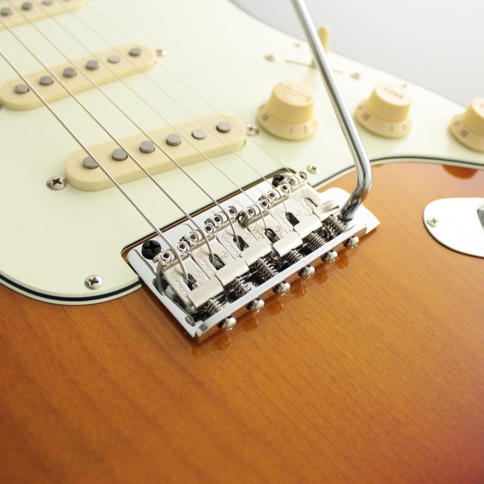 当モデルは、アルダーボディ、ローズウッド指板、3S配列、3トーンサンバーストカラーという定番の組み合わせ。